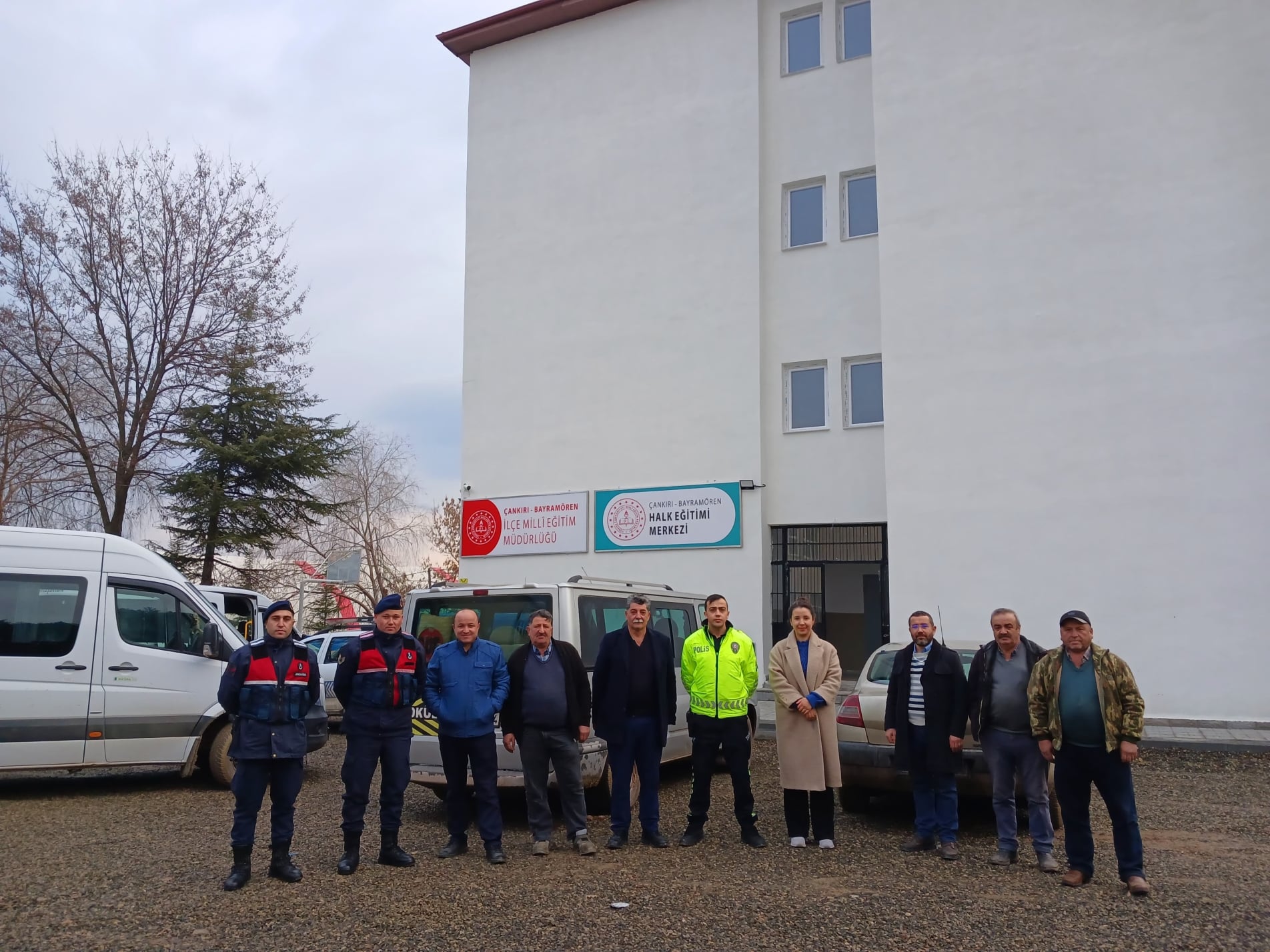 Öğrencilerin güvenli ve konforlu bir şekilde okullarına ulaşım sağlaması için, okul servis araçları İlçe Emniyet Müdürlüğü, İlçe Jandarma Komutanlığı, İlçe Milli Eğitim Müdürlüğü ve Bayramören Belediyesi Zabıta Müdürlüğü iş birliği ile servis araçlarının gerekli kriterlere uygun olup olmadığı titizlikle incelendi.